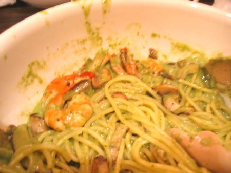 貝里尼裡的餐點全採單點式,第一道上的是羅勒鮮蝦磨菇麵,